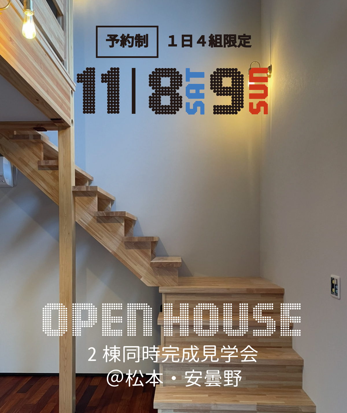 【2025/11/08土09日】@松本市+安曇野市 上記日程にて2棟同時完成見学会を開催致します。